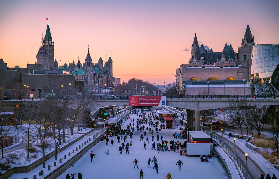 Our famous Rideau Canal is right around the corner – get ready for some fun! In warm weather, hop on a boat, paddle a kayak, or enjoy a relaxing walk or bike ride. And when it freezes over? It's the world's biggest skating rink! You've got to try it – it's an Ottawa classic!